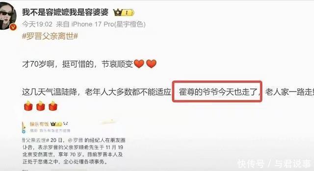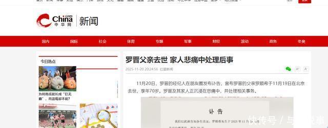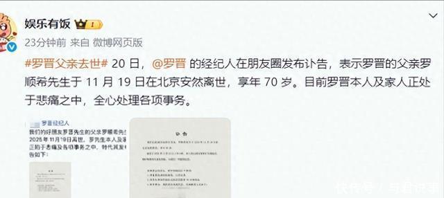 他的离去,也是对所有年轻人的一个警示,有再多钱又有什么用,健康才是最大的财富,有钱人都难以抵抗病痛的折磨,更何况是我们普通人。 没想到刚刚得知这个消息的第二天,演艺圈也传来悲讯,著名演员罗晋的父亲罗顺希医生于11月19日逝世,享年70岁。